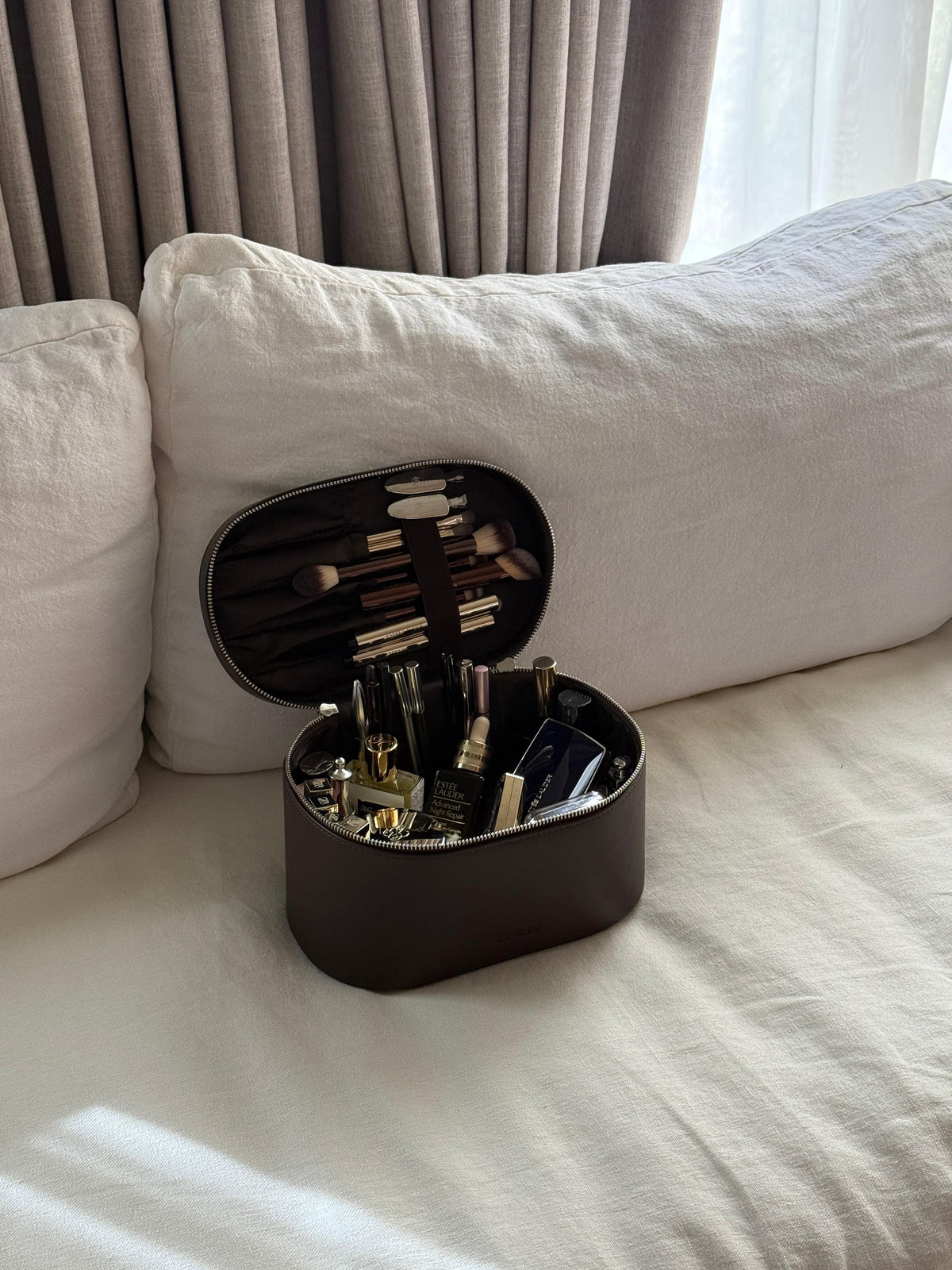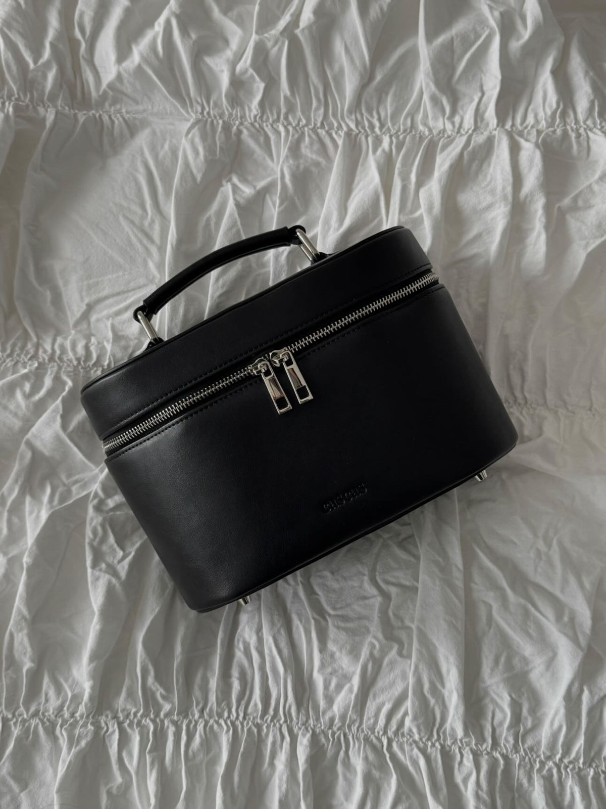 Our iconic vanity case crafted from premium vegan leather.